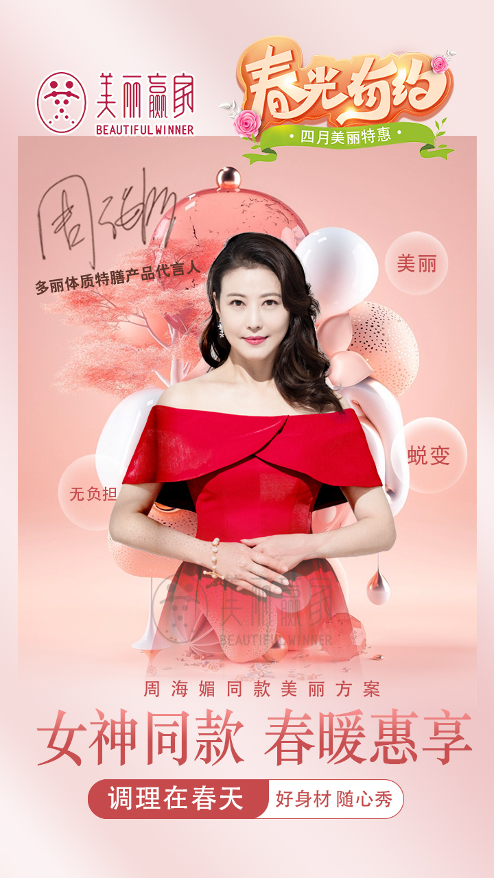 4月8日-4月12日期间,美丽赢家将推出“春光有约,四月瘦身特惠”活动,活动期间,美丽赢家旗下所有产品及服务迎来一波全新超值福利,多买多送,好礼享不停。