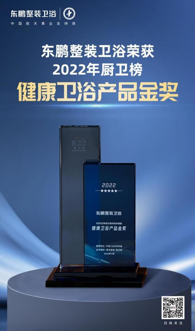 会上,2022年中国厨卫榜榜单同期揭晓,东鹏整装卫浴凭借强大的品牌实力、卓越的产品品质荣膺2022年度厨卫榜四大重磅奖项“十大卫浴品牌”、“智能卫浴领军品牌”、“健康卫浴产品金奖”、“厨卫行业产品质量金奖”。