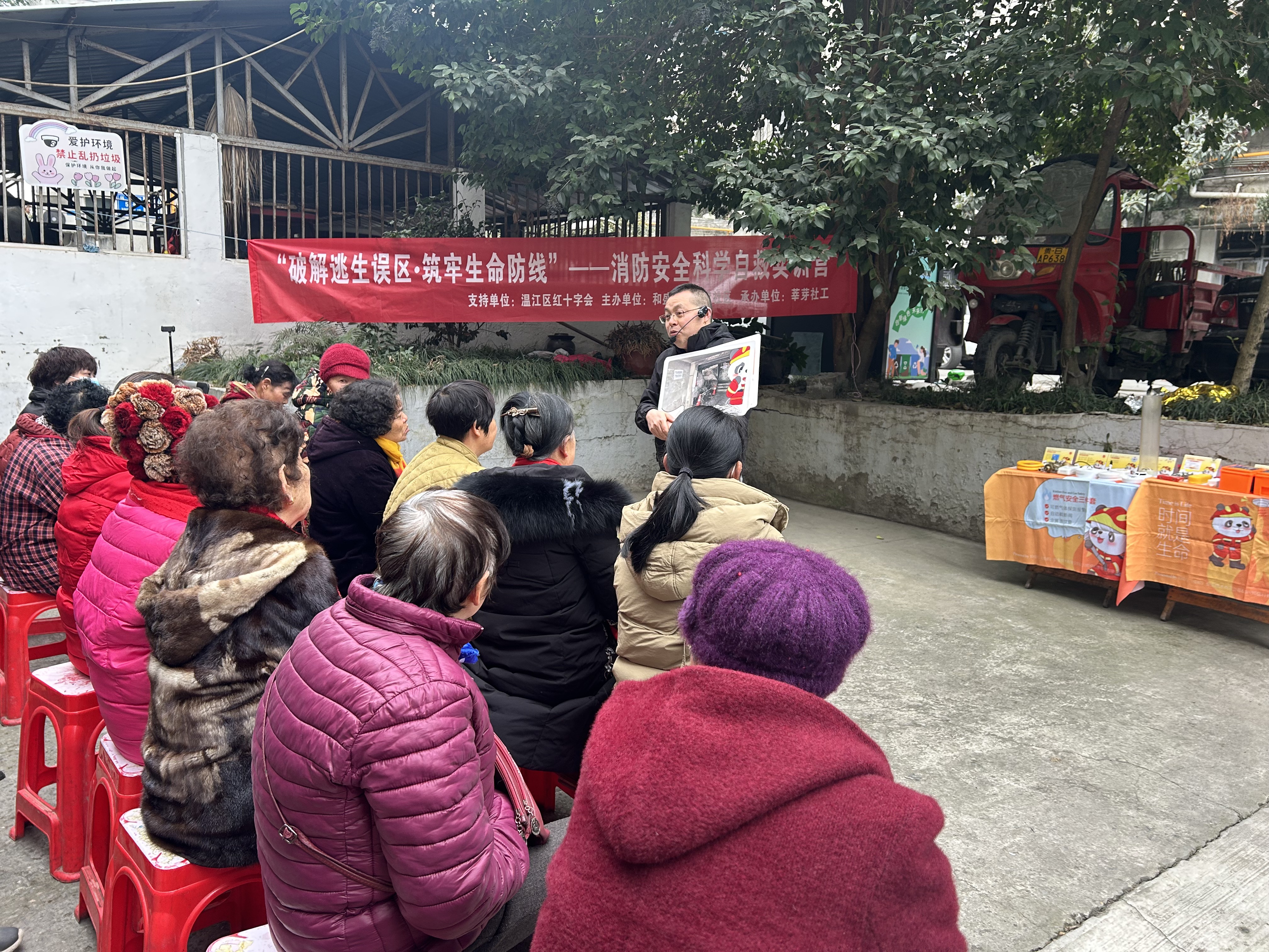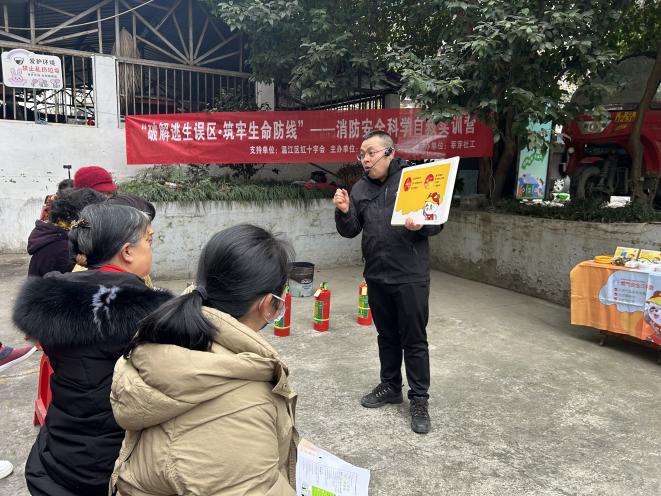 新闻行业垂直网站为进一步增强公众消防安全意识,提升火灾自防自救能力,筑牢社区与家庭安全防线,2026年1月30日,在温江区红十字会的支持下,舒家渡社区联合莘芽社工共同组织开展了一场以“破解逃生误区·筑牢生命防线”为主题的消防安全科学自救实训营。本次活动在辖区内的三无院落前进苑小区开展,旨在通过“理论授课+情景推演+实操体验”的立体化教学模式,引导居民们走出传统逃生误区,掌握科学自救技能,共计近30人参与。