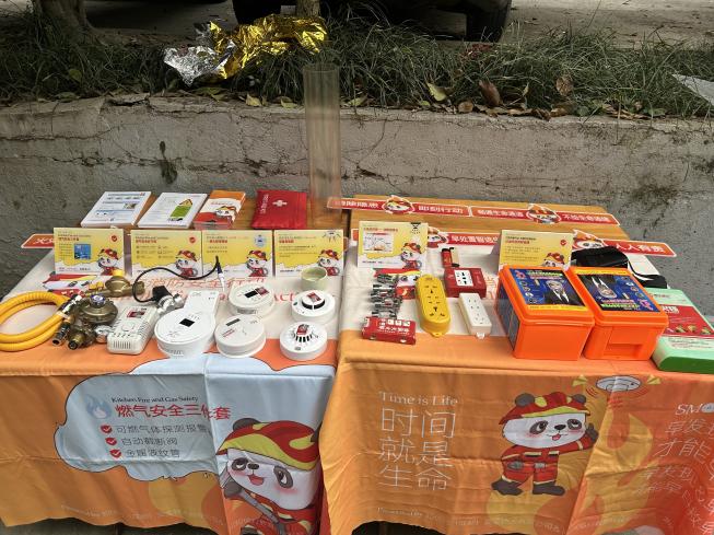 活动现场还设置了消防器材展示区,陈列了烟雾报警器、燃气报警器、灭火器等多种常见消防设施,配合消防安全宣传折页、标语展板等资料,营造了浓厚的“学消防、懂消防、用消防”氛围。