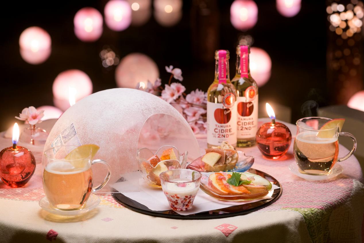 津轻地区自古便流传着一种生活智慧——将收获的苹果埋藏于雪中贮存。在雪的低温与高湿度环境中慢慢熟成的「雪藏苹果」,甜度增加,口感愈发水润多汁。我们以这种雪藏苹果制成四款开胃酒小食,并搭配热饮苹果酒一同呈现。